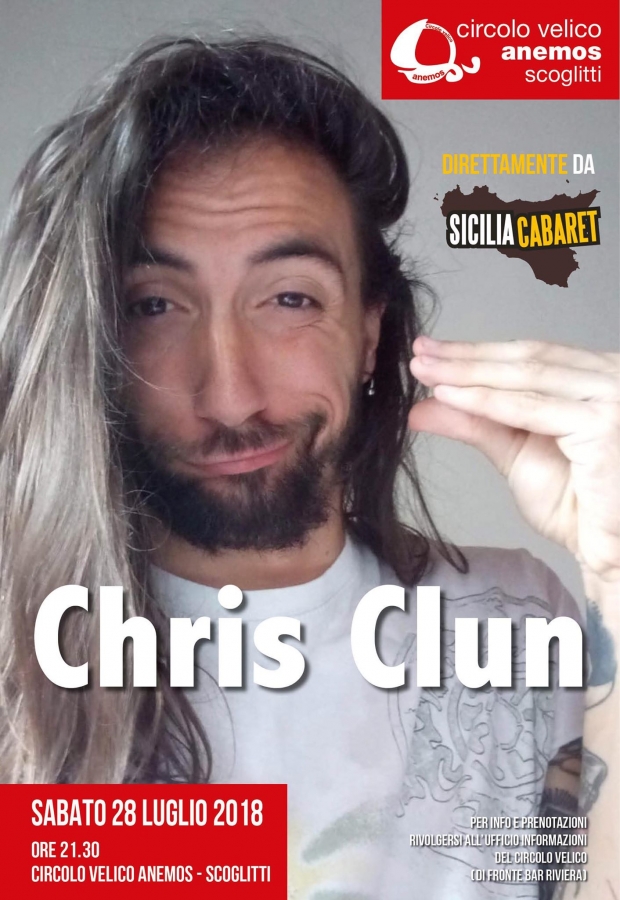 Il 28 Luglio ore 21:30 non prendete impegni..al Circolo velico Anemos( di fronte bar Riviera) avremo come ospite Chris Clun...personaggio televisivo di Sicilia Cabaret..Una serata da non perdere. Vi aspettiamo!