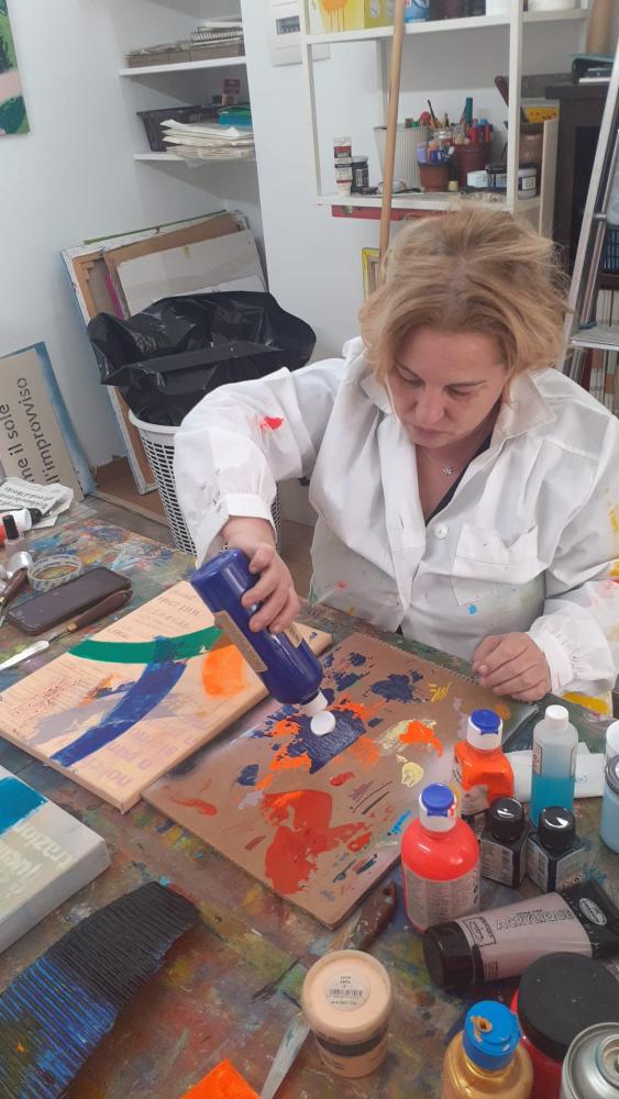 Teresa Coratella, romana, si diploma a Liceo Artistico e prosegue i suoi studi all’Accademia di Belle Arti di Roma. Si trasferisce in seguito a Bruxelles con una borsa di studio e approfondisce le sue ricerche artistiche. Conosce, incontra e frequenta l’atelier del maestro Olivier Strebelle, artista del movimento Cobra. Nel 2019 consegue un Master In Arteterapia per approfondire la sua attività artistica, andando alla ricerca del segno autentico, libero e liberatorio del proprio Io. Artista poliedrica immersa nel contemporaneo, come pittrice è definita colorista e gestuale, caratterizzata una spiccata sensibilità materica che punta a trasformare la “bellezza in verità” attraverso luce e movimento. Integra l’arte con la riflessione civile e l’arteterapia. Intensa la sua attività di video performance, che pratica sempre con la sorella Rossana.
