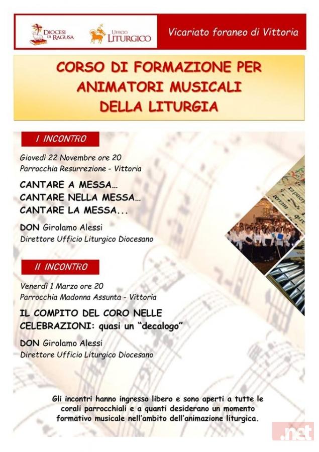 Il vicariato foraneo di Vittoria, in concorso con l’ufficio liturgico della Diocesi di Ragusa, organizza per il giorno 22 novembre il primo di un ciclo di due incontri, per operatori della pastorale musicale parrocchiale.