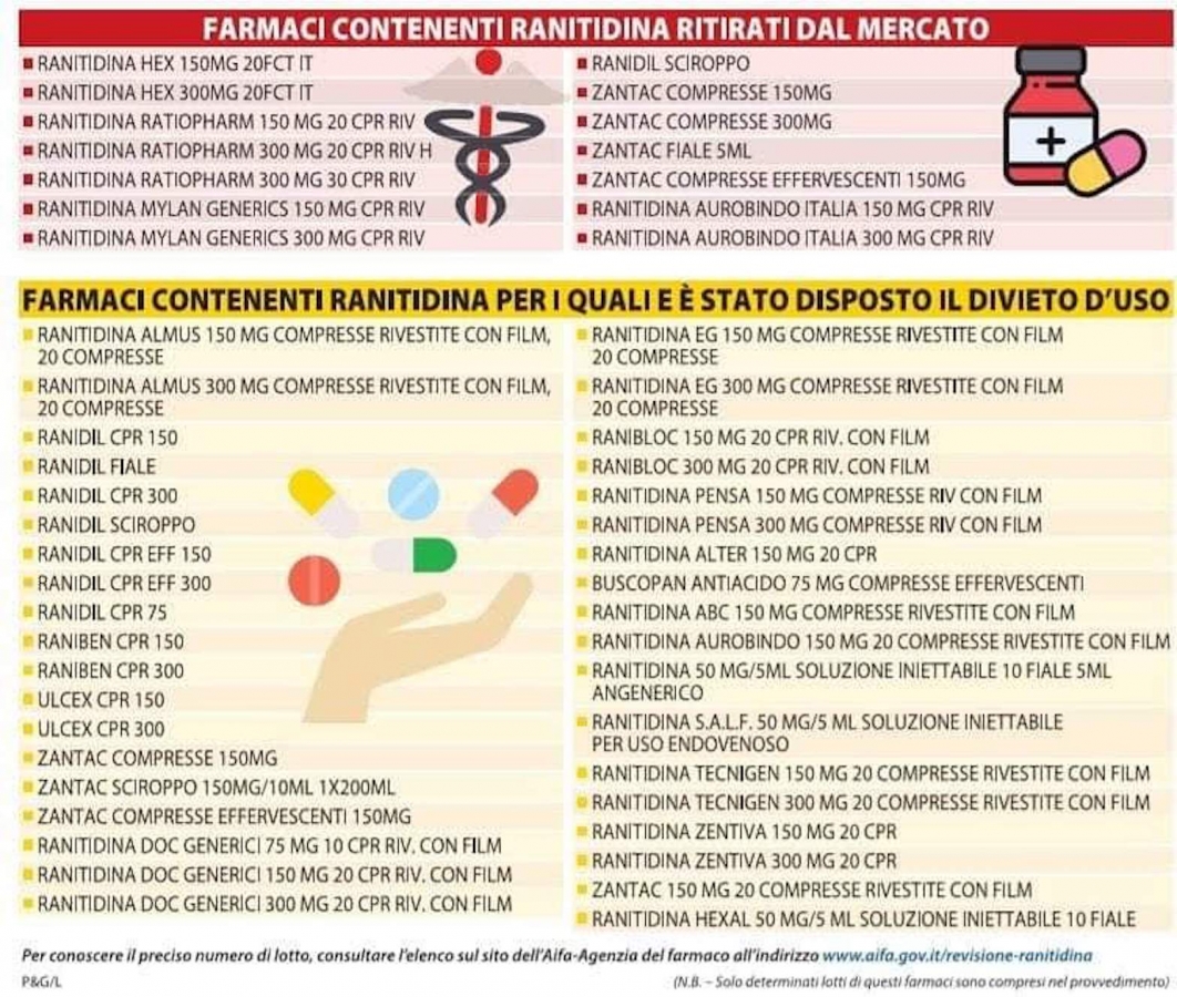 - Non si attende un rischio acuto per il paziente che abbia già assunto medicinali contenenti ranitidina.