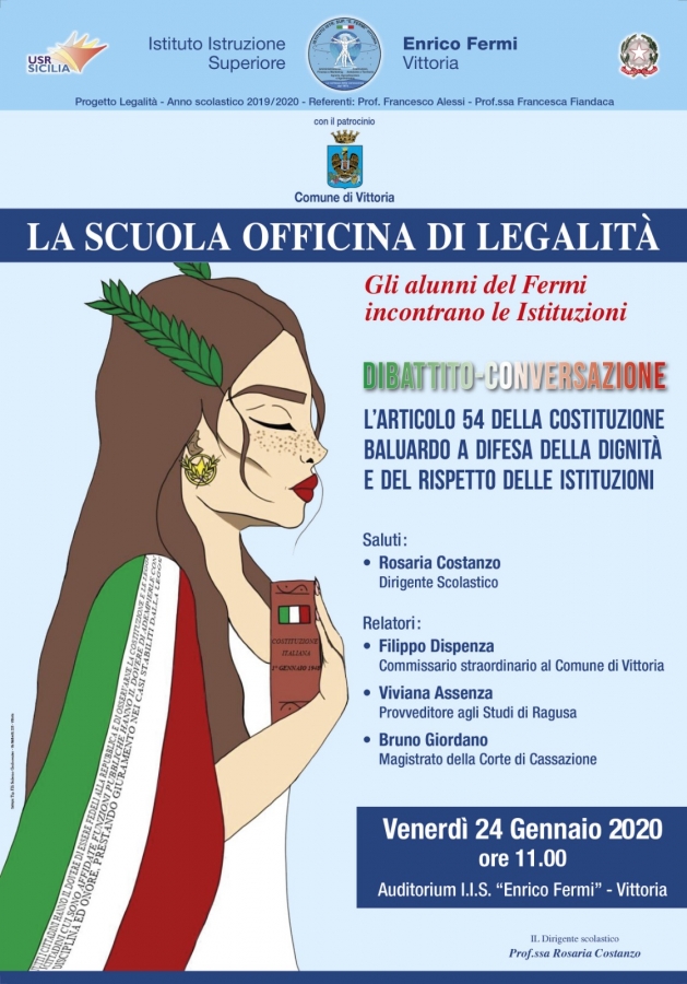 Recita così l'articolo 54 della Costituzione Italiana che sarà al centro di un seminario organizzato all'istituto tecnico Enrico Fermi di Vittoria, dalla Commissione straordinaria del Comune, con lo scopo di puntare l'attenzione su tre concetti fondamentali: fedeltà, disciplina, ed onore su cui si basa il principio di cittadinanza della Repubblica italiana. Si tratta in generale, di un progetto portato avanti dai Commissari del Comune, che hanno deciso di mettere a disposizione degli studenti, in qualità di esponenti dell’organo di governo locale, una riflessione sul valore profondo del dovere e del rispetto delle regole giuridiche del nostro ordinamento.