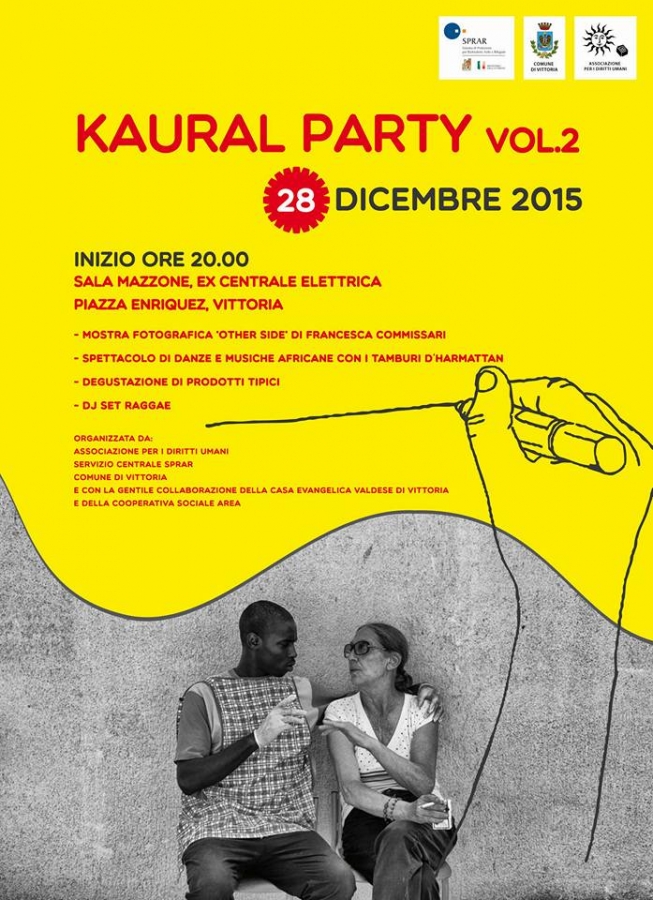L'Associazione per i Diritti Umani dopo il successo dell'anno scorso ripropone il Kaural Party - integrazione multiculturale - momento di incontro e di FESTA - Musica e danza con i "Tamburi d'Harmattan" - Degustazione di prodotti tipici - Mostra fotografica "Other side" della fotoreporter Francesca Commissari - Dj set Raggae At control South Fyah sound Ingresso libero 28 dicembre EX CENTRALE ELETTRICA - Sala Mazzone Invitate i vostri amici e venite a divertirvi con noi ;)