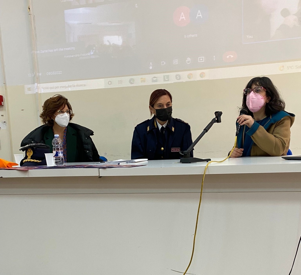 In occasione della Giornata Internazionale della Donna, l’associazione Donne a Sud è finalmente tornata alle celebrazioni in presenza. La rappresentante legale, avv. Rossana Caudullo, è stata tra le relatrici dell’incontro organizzato nell’auditorium del Liceo Classico e Scientifico di Vittoria, che ha visto la partecipazione anche del Commissario Capo della Polizia di Stato Rosalba Capaccio. Davvero interessante e ricco di spunti il suo intervento, incentrato sulla figura della donna in Polizia, possibile a tutti gli effetti solo dal 1986, e sui reati nei confronti delle donne e dei soggetti vulnerabili.