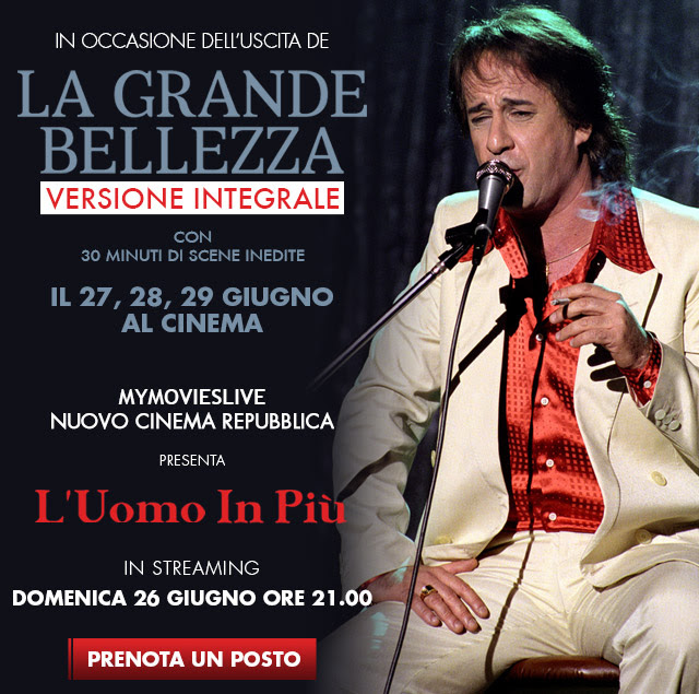 In occasione dell'uscita de La grande bellezza - Versione integrale al cinema il 27, 28 e 29 giugno, Repubblica.it e MYmovies.it presentano su MYMOVIESLIVE - Nuovo Cinema Repubblica L'uomo in più, opera prima di Paolo Sorrentino.
