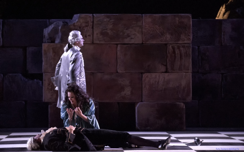 TAORMINA – Scacco matto al re dei libertini, scacco matto a Don Giovanni. È su un’enorme scacchiera, grande quasi come il palcoscenico del Teatro Antico, che il regista e scenografo Enrico Castiglione ha costruito la sua nuova originalissima messinscena del capolavoro mozartiano. Una scacchiera fatale sulla quale il Burlador de Sevilla gioca e perde l’ultima e fondamentale partita, la cui posta è la vita stessa e la dannazione eterna. L’idea registica e scenografica di Enrico Castiglione, accolta con vivo entusiasmo da un attentissimo pubblico di residenti e turisti provenienti da ogni parte del mondo, è di quelle che lasciano il segno: per la prima volta il Don Giovanni viene messo in scena su un'enorme scacchiera sulla quale il mito del seduttore per antonomasia, oggetto di infinite trasposizioni teatrali, musicali e non, sembrano prigionieri del loro stesso destino e si muovono come pedine di una partita superiore, appassionata e nel contempo crudele, giocosa ed insieme cinica, clemente eppur spietata. Una messa in scena assolutamente inedita, che resterà come una sorta di moderna applicazione alla figura universale del seduttore per eccellenza. Applaudito in tutto il mondo, Enrico Castiglione torna peraltro a Don Giovanni dopo averlo riletto in teatro diverse volte e aver ottenuto successo internazionale con l'edizione rappresentata nel 2001 al Teatro Argentina di Roma, con Renato Bruson, Amarilli Nizza, Luca Canonici, Stefano De Peppo, la direzione d’orchestra di Michael Halazh; un allestimento di cui rimane la versione video tante volte trasmessa dalla RAI e dalle principali reti televisive internazionali. Castiglione ha ora proposto il titolo a Taormina, con un allestimento pensato esclusivamente per il Teatro Antico, con nuovi costumi che esaltano il fregio seicentesco, disegnati e costruiti da Sonia Cammarata nel proprio laboratorio. In scena un cast internazionale di autentici specialisti mozartiani. Don Giovanni è stato reso con rara prestanza vocale e fisica dal basso-baritono tedesco di origini greche Panajotis Iconomou. Possente deuteragonista era il Commendatore dal basso José Antonio Garcia. Magistrale sul piano musicale e scenico il soprano Chiara Taigi, una Donna Anna al tempo stesso combattiva e dolente, seducente e sedotta, profondamente spirituale. A Don Ottavio prestava un’impeccabile linea di canto il tenore Filippo Pina Castiglioni. Volitiva e tragicomica la Donna Elvira del soprano Adriana Damato. Padronanza del ruolo e ricerca del dettaglio hanno caratterizzato il basso Noé Colin, nei panni buffi di Leporello. Perfettamente in ruolo anche il Masetto del basso Daniele Piscopo e la Zerlina del mezzosoprano Marina Ziatkova. Sul piano della recitazione, Castiglione esalta la ricerca del piacere attraverso l’inganno e la sopraffazione del potere, che il Burlador esercita per conquistare le sue prede e subito dopo abbandonarle nella loro disperazione, perché prontamente attratto da una nuova preda. “I personaggi – spiega il regista – sono condotti in una sorta di grande partita a scacchi, dove i desideri, i sentimenti, le passioni si rincorreranno per fondersi e separarsi, per intrecciarsi e per allontanarsi: all’insegna dell’inganno, della seduzione fine a se stessa, nella totale mancanza di amore che condurrà alla morte, ovvero allo scacco matto del protagonista, il cavaliere Don Giovanni”. Il Coro Lirico Siciliano era istruito da Francesco Costa, il Corpo di ballo ha danzato sulle coreografie di Sara Lanza. L’Orchestra del Festival Euro Mediterraneo è stata diretta con mano sicura e ispirata da Stefano Romani. Tantissimi applausi a scena aperta e una trionfale ovazione finale hanno suggellato la serata. Don Giovanni, in replica il 9 e 12 agosto, è il secondo titolo della “Trilogia di Siviglia”, formata dalle tre celebri opere ambientate nella città andalusa e presentata quest’estate a Taormina da Enrico Castiglione. La prima è stata “Carmen” di Bizet, accolta nei giorni scorsi da straordinari consensi e in programma ancora il 7, 10 e 13 agosto. La terza opera è “Il Barbiere di Siviglia” di Rossini, che debutterà l’8 con repliche l’11 e il 14. E ogni sera è corsa al biglietto al Teatro Antico, a conferma della qualità della programmazione operistica allestita dal Festival Euro Mediterraneo in con collaborazione con la sezione “Musica e danza” di Taormina Arte, di cui è direttore artistico lo stesso Enrico Castiglione.