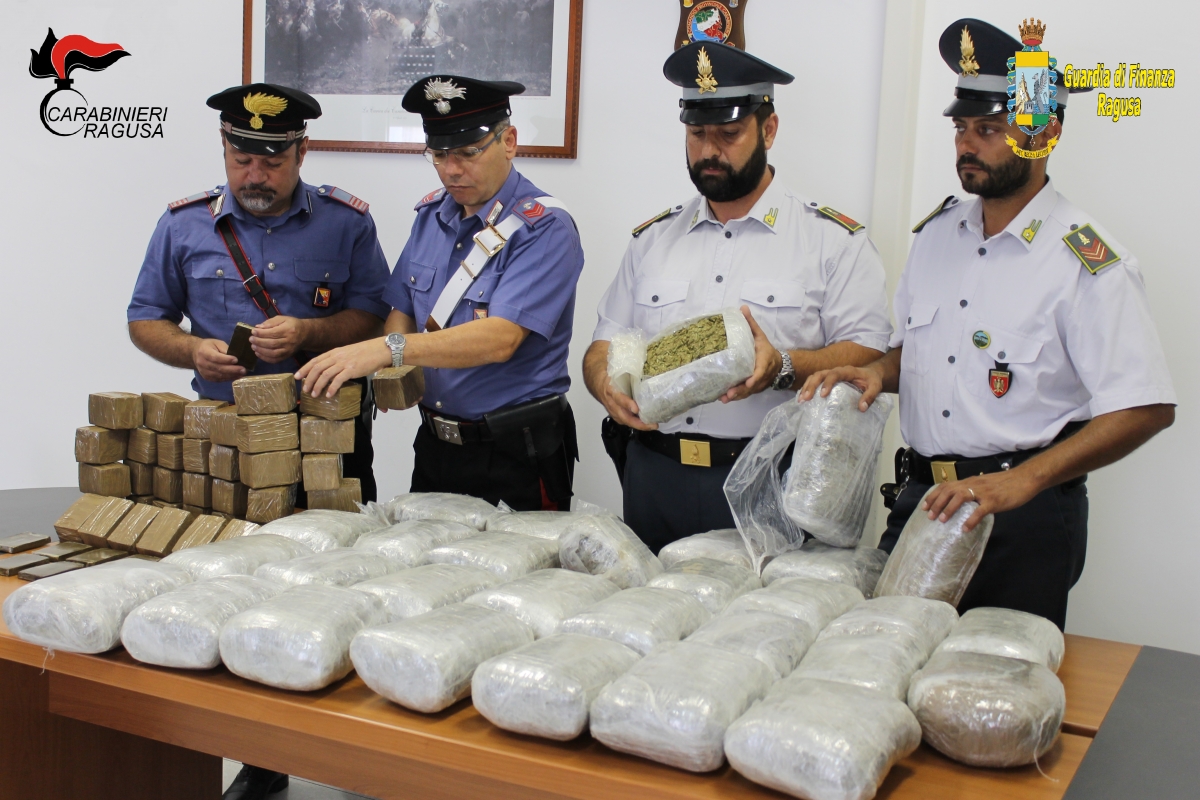 I Carabinieri del Nucleo Operativo e Radiomobile di Modica ed i Finanzieri del Comando Provinciale della Guardia di Finanza di Ragusa, collaborati dal funzionario dell’Agenzia delle Dogane, hanno effettuato un maxi sequestro di droga all’interno dell’area portuale di Pozzallo, scaturente dal recente innalzamento del livello di sicurezza disposto dalla Prefettura di Ragusa e dalle ultime disposizioni in materia di repressione traffici illeciti. In particolare, nel corso di un mirato servizio di prevenzione e repressione di reati connessi al terrorismo internazionale e al traffico di sostanze stupefacenti, i militari dell’Arma dei Carabinieri ed i Finanzieri della Tenenza di Pozzallo, hanno tratto in arresto due cittadini catanesi, padre e figlia, Musumeci Nicola, classe '70, nullafacente, già noto alle forze di polizia e Musumeci Giusi, classe ’96, incensurata, sorpresi con oltre 50 Kg. di sostanze stupefacenti in auto. L’uomo e la donna, quest’ultima con il giovane figlio di tre anni al seguito al fine di non destare sospetto, a bordo della loro autovettura, stavano effettuando l’imbarco sul catamarano diretto a Malta ma, nel corso dei controlli di sicurezza effettuati, hanno manifestato segni di nervosismo tali da insospettire i militari. Gli uomini dell’Arma e della Guardia di Finanza, procedendo ad un controllo più approfondito, all’interno del bagagliaio dell’autovettura, hanno rinvenuto un grosso borsone con all’interno 20 kg. di hashish, suddivisi in 38 panetti e circa 30 kg. di marijuana, suddivisa in 30 imballaggi in cellophane. I due soggetti, pertanto, sono stati tratti in arresto per il reato di detenzione di sostanza stupefacente ai fini di spaccio in concorso e, su disposizione del Sostituto Procuratore di turno, dott.ssa Monica Monego, l’uomo è stato condotto presso la Casa Circondariale di Ragusa mentre la figlia sottoposta agli arresti domiciliari. L’intero quantitativo di sostanza stupefacente è stato sequestrato e inviato al laboratorio di analisi dell’Asp di Ragusa per stabilire la valenza del principio attivo per poter quantificare le dosi ed i presumibili ricavi che avrebbero potuto ottenere con l’attività di spaccio. Prosegue l’attività delle Forze di Polizia al contrasto dei traffici illeciti, per tutelare la collettività con particolare riguardo alle fasce sociali più deboli ed ai giovani che, troppo spesso, ne vengono coinvolti.