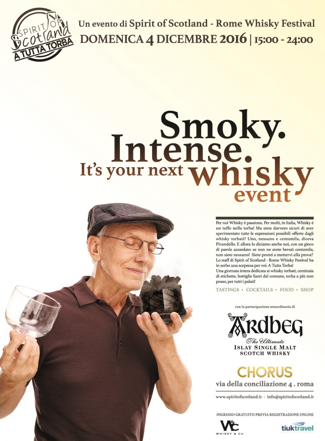 Si tiene a Roma, presso il Chorus Cafè (via della Conciliazione, 4), a partire dalle ore 15:00 fino a mezzanotte, 'A Tutta Torba!', una giornata intera dedicata interamente ai whisky torbati, con centinaia di etichette, bottiglie fuori dal comune, per tutti i palati! L'evento, organizzato dalla direzione artistica di Spirit of Scotland – Rome Whisky Festival, il più importante festival di settore italiano - la cui sesta edizione si terrà il 4 e 5 marzo 2017, nella consueta location del Salone delle Fontane all'Eur - è a ingresso gratuito, previa registrazione sul sito www.spiritofscotland.it Grande risalto sarà dato all’Ardbeg Cocktail Bar, gestito dal 'padrone di casa' del Chorus Cafè, Massimo D’Addezio e dal suo staff. Spazio anche al cibo, con piatti tipici della cucina scozzese da abbinare ai propri torbati preferiti e in collaborazione con lo shop Whisky & Co, sarà possibile acquistare numerose bottiglie presenti. “Per noi - sottolineno i direttori artistici di Spirit of Scotland - Whisky è sinonimo di Passione. Torbosi o torbati, in qualsiasi modo li si voglia chiamare, è innegabile che questi whisky riscuotono sempre un grande successo. La torba è presente in tutto il pianeta eppure, anche solo rimanendo in Scozia, c’è torba e… torba! Per questa ragione abbiamo pensato di creare un evento per tutti gli appassionati di questa categoria di aromi, proponendo, in una manifestazione di una sola giornata, le molteplici e variegate espressioni possibili”. Spirit of Scotland – Rome Whisky Festival (prossima edizione 4 e 5 marzo 2017) riunisce le migliori aziende nazionali e internazionali in un evento che promuove la valorizzazione e la diffusione della cultura del whisky di malto attraverso un approccio basato sull’interazione tra business, formazione ed entertainment. Il Festival si presenta come una delle più importanti manifestazioni italiane del settore. Un vero e proprio brand che sostiene e promuove il whisky; un marchio di qualità che ne favorisce la divulgazione in un sistema volto a sostenere l’interazione tra i principali attori del settore. Spirit of Scotland – Rome Whisky Festival è un imperdibile appuntamento per tutti coloro che vivono il mondo del whisky ricco di eventi, degustazioni libere, masterclasses, seminari sulla mixology, incontri affidati ad esperti del settore con l’obiettivo di creare appuntamenti ad alto contenuto di “single malt”. Ardbeg è noto per essere The Ultimate Islay Single Malt Whisky. Fondato nel 1815, Ardbeg è venerato dagli intenditori di tutto il mondo come il Single Malt più torbato, affumicato e complesso di Islay. Nonostante questo suo carattere distintivo, Ardbeg è allo stesso tempo rinomato per la sua deliziosa dolcezza, un fenomeno che è affettuosamente conosciuto come 'the peaty paradox'.