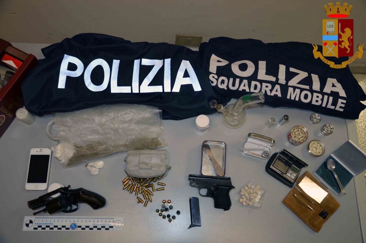 Venerdì scorso, 18 gennaio,, personale della Squadra Mobile di Ragusa e del Commissariato di P.S. di Vittoria, ha tratto in arresto un cinquantenne vittoriese incensurato, poiché a seguito di perquisizione locale eseguita presso l’abitazione ed il garage in uso allo stesso, siti in una zona periferica di Vittoria, sono state rinvenute due pistole, munizioni e più tipi di droga. Gli uomini della Polizia di Stato sono arrivati davanti casa di questo soggetto che era stato segnalato agli investigatori come spacciatore. Dopo aver atteso un suo movimento hanno proceduto al controllo. Durante la perquisizione venivano rinvenute marijuana e cocaina. L’attività di Polizia continuava e gli investigatori oltre la droga rinvenivano anche un bilancino di precisione ed una cartuccia per pistola. A quel punto la perquisizione è proseguita fino al rinvenimento di due pistole e decine e decine di munizioni da sparo. Adesso gli investigatori della Polizia di Stato stanno valutando come mai un incensurato occultasse, oltre la droga, anche due pistole e tutte quelle munizioni. Nei giorni a seguire, l’arresto dell’uomo è stato convalidato. La Procura della Repubblica ha richiesto ed ottenuto dal Giudice per le Indagini Preliminari la misura cautelare in carcere, considerata la particolare gravità dei fatti reato consumati.