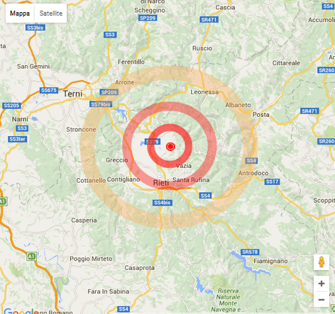 Una di magnitudo 6 è stata registrata alle 3:36. L'epicentro a 2 chilometri da Accumoli (Rieti) e 10 da Arquata del Tronto (Ascoli Piceno) ed Amatrice (Rieti). L'ipocentro è stato a soli 4 km di profondità . Seconda e terza scossa sono state registrate alle 4:32 e 4:33. Hanno avuto epicentro in prossimità di Norcia (Perugia), Castelsantangelo sul Nera (Macerata) e Arquata del Tronto (Ascoli Piceno). Gli ipocentri sono stati tra gli 8 e i 9 km. Oltre 50 finora (alle 6:40) le repliche di magnitudo superiore a 2, cinque delle quali di magnitudo 4 o superiore.