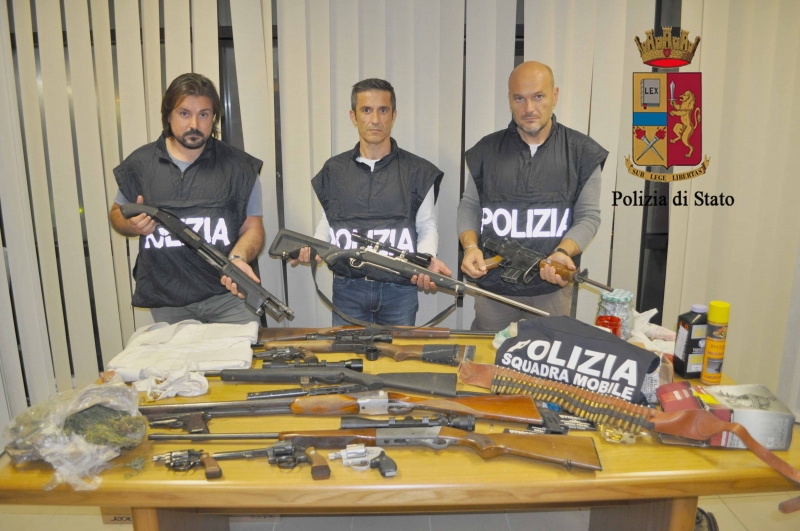 La Squadra Mobile di Ragusa ha rinvenuto, a Vittoria, armi con congegni di puntamento per il tiro di precisione utilizzati dai cecchini, pistole modificate e con silenziatore, munizioni, giubbotti antiproiettile, fucili a pompa con puntatore laser; altre armi provenienti dal mercato estero e con matricola abrasa, materiale esplodente, macchine per fabbricazione e modifica delle potenzialità delle munizioni e droga. Si sta cercando adesso di capire da dove arrivino queste armi, dalla spiccata potenzialità offensiva e tutte pronte all’uso, che potrebbero appartenere ad uno dei clan mafiosi operanti in Provincia di Ragusa. Tra queste, c’è perfino la penna-pistola di 007 e la Polizia Scientifica è già al lavoro per verificare se le armi siano state utilizzate per commettere delitti.
