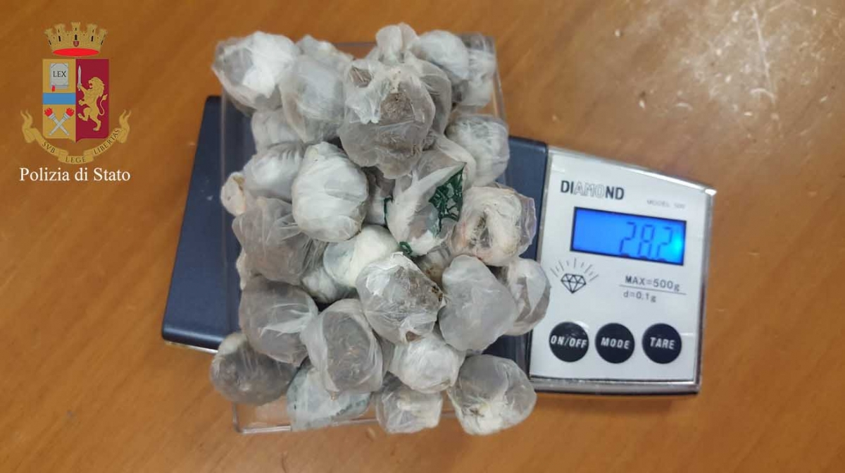 Un poliziotto libero dal servizio nota nella piazza centrale del paese un giovane con si aggirava con fare sospetto. La Squadra Mobile interviene ed arresta lo spacciatore in possesso di oltre 40 dosi di marijuana già pronte per la vendita. La Polizia di Stato - Squadra Mobile – arresta BALOGUN Razaq nato in Nigeria il 20.08.1994 residente ad Ispica presso un centro di accoglienza straordinaria per richiedenti asilo politico, per detenzione ai fini di spaccio di marijuana. I poliziotti sono sempre in servizio, anche quando liberi durante una passeggiata serale, difatti proprio ieri sera, uno degli uomini della Digos, mentre si trovava libero dal servizio, si avvedeva di un giovane nigeriano che si aggirava con fare sospetto. Al fine di procedere al controllo, l’agente di Polizia richiedeva l’intervento della Squadra Mobile che agendo in borghese avrebbe potuto appurare se i sospetti fossero fondati. Effettivamente, intorno alle 23.00 circa, dopo un’attività di osservazione del soggetto indicato dal collega, il nigeriano sembrava attendere qualcuno. Al fine di non compromettere le condizioni di sicurezza dei tanti cittadini presenti in Piazza Unità d’Italia, gli uomini della Squadra Mobile e l’agente libero dal servizio della Digos procedevano al controllo. Nelle more sopraggiungeva un altro agente della Polizia di Stato anch’egli libero dal servizio ma, notando i colleghi in attività operativa, si metteva subito a disposizione. Alla richiesta di documenti il nigeriano tentata di darsi alla fuga ma veniva inseguito e bloccato. Nonostante i tentativi di farlo calmare, i 4 poliziotti non riuscivano subito nel loro intento. Il tentativo di fuga era presto giustificato, difatti il nigeriano occultava sotto la maglietta un sacchetto con oltre 40 dosi di marijuana per il peso di cica 30 grammi di droga. Lo spacciatore veniva quindi ammanettato e condotto presso gli Uffici della Squadra Mobile dove i 4 poliziotti procedevano al suo arresto. Dagli accertamenti effettuati dalla Polizia Scientifica veniva identificato l’arrestato che risultava essere regolare sul territorio italiano in quanto richiedente asilo politico e dimorante presso un centro per assistenza straordinaria di Ispica. Al termine di tutta l’attività di Polizia Giudiziaria l’arrestato veniva condotto in carcere a disposizione dell’Autorità Giudiziaria. “La Polizia di Stato continua l’opera incessante di repressione di ogni condotta riconducibile al traffico di sostanze stupefacenti, questa volta grazie all’intuito investigativo di un poliziotto libero dal servizio”.